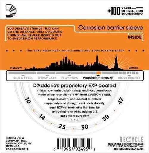 O Phosphor Bronze foi introduzido na fabricação de cordas pela D’Addario em 1974. A partir de então tornou-se a escolha preferencial de grandes músicos em todo o mundo, tanto para palco, como para estúdio. Seu núcleo de aço com alta concentração de carbono proporciona um timbre quente, brilhante e equilibrado. As cordas D’Addario Phosphor Bronze são uma referência para todas as cordas de violão.
