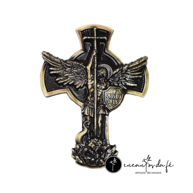 Crucifixo de Metal São Miguel Arcanjo – Ouro Velho